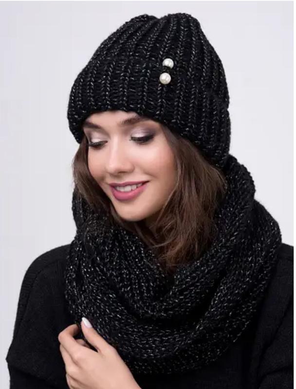 Вʼязані шапка та хомут Розмір : універсальний Ширина шарфа 30 см Довжина шарфа 130 см Тип тканини 50% вовна, 20% мохер, 20% кашемір, 10% акрил