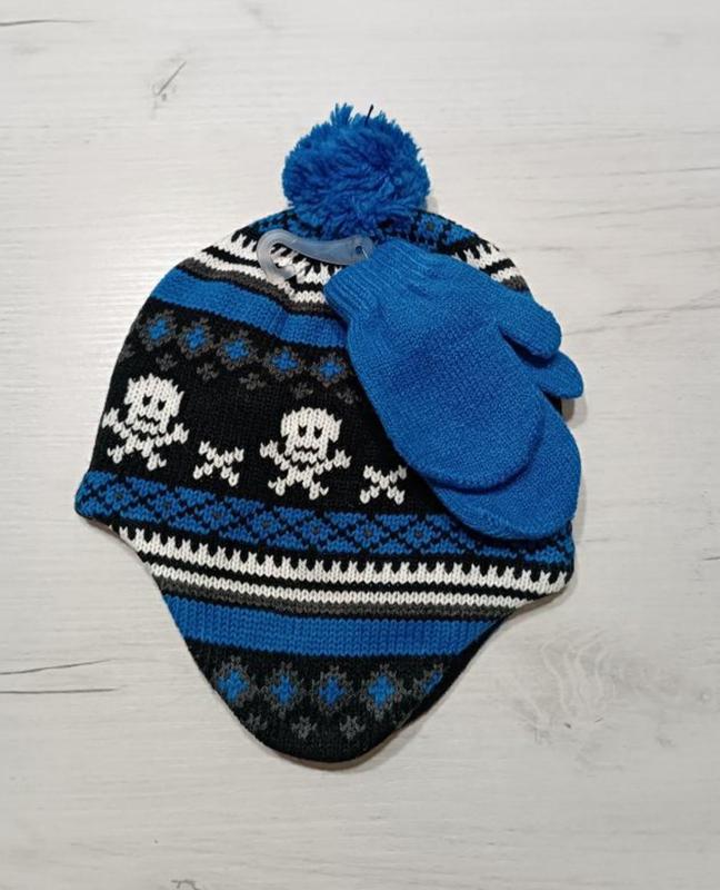 Демисезонный трикотажный набор для мальчика шапка + перчатки на флисовой подкладке размер указанный ONE SIZE, поэтому ориентируйтесь по замерам ширина 21 см высота: 18 см высота с ушками 23 см окружность 48 см длина перчатки 12 см