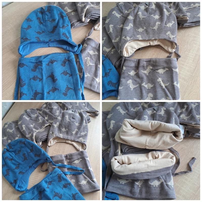 Комплект из хлопковой пряжи с трикотажной подкладкой на мальчика 2-3 года. 48-50 см ✅️ Шапочка декорирована светоотражающей расческой. Склад: верх - 50%-бавовна, 50%-ПАН подклад - 97%-хлопок, 3%-лайкра цвет в наличии кофе📌 и светлый джинс 📌 Замеры фото снаряжения 🤗