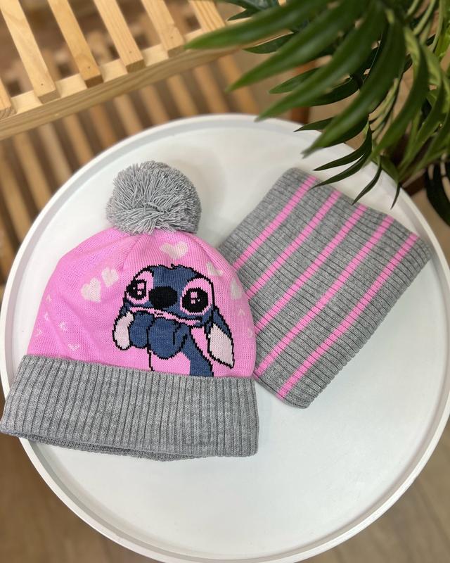 Милий комплект для дівчаток зі Стічем Шапка декорована трикотажним помпоном, з відворотом, що закріплений Утеплена флісом по всій площині зсередини Хомут - щільна двошарова в'язка Склад: основа - 50% вовна, 50% акрил; підклад - 100% поліестер (фліс) Підійде для дівчаток орієнтовно 6-9 рочків На холодну осінь-зиму и ❌увага!є наложка по передоплаті звичайним замовленням ( через шафу наложки немає, безпечною оплатою не працюємо) замовлення через шафу тільки по повній оплаті ! 🛑перед замовленням уточнюйте наявність розміру!