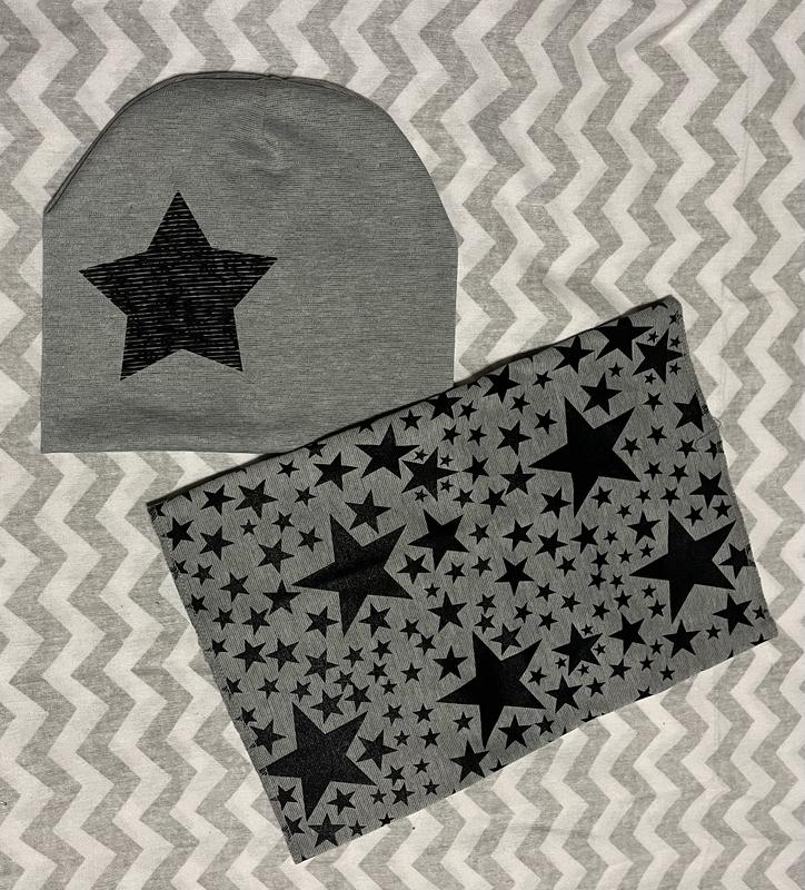 Нетовста трикотажна шапочка глибиною 21см і снуд довжиною 35,шириною 24 см.Підійде дитині 5-8 років.