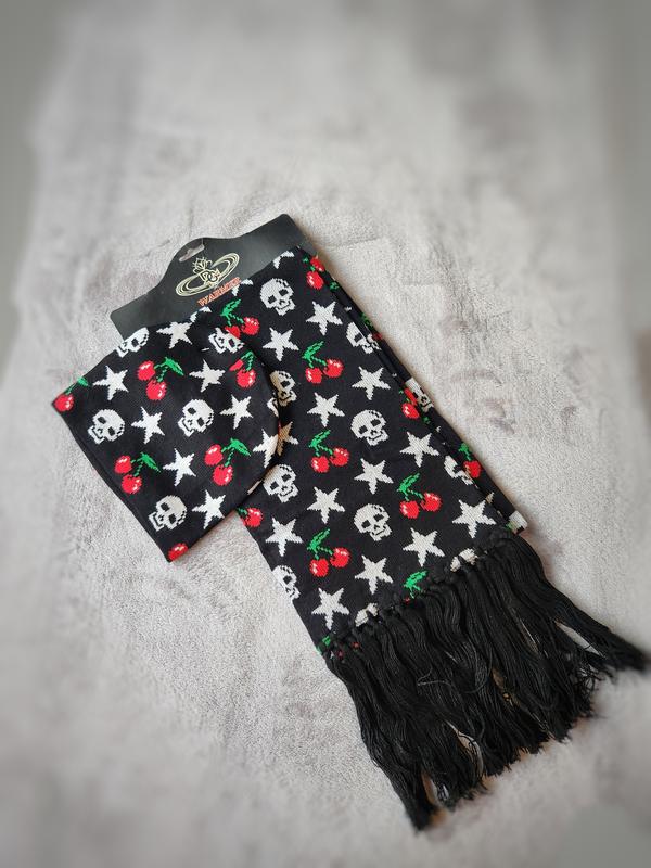 Набор шапка и шарф. черепа, звезды, вишенки.