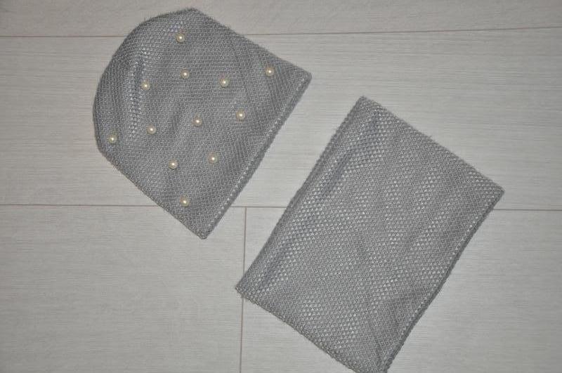 Гарний комплект шапка і хомут. Приємний сріблястий колір. Шапка з трикотажною підкладкою. Хомут щільний, подвійний. Носили в середній демисезон. Розмір: 4-6 років, на обсяг 48-52 Стан: відмінне, без дефектів і катишек. Одягали кілька разів і влітку зросли.