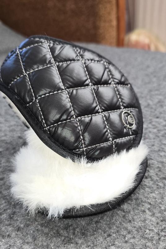 нові!! Суперм'які вітрозахисні навушники з хутряною підкладкою, теплі навушники, щільно прилягають до вух, захищають шию. Матеріал: плащівка + штучне хутро Колір: Чорний з білим хутром Діаметр: 11см