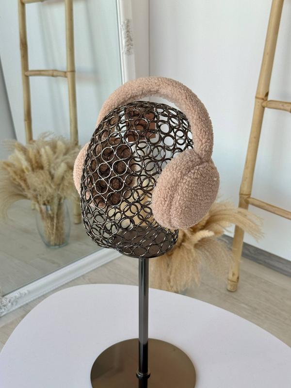 Женские теплые наушники главный убор искусственный мех тедди, баранец бежевые персиковые