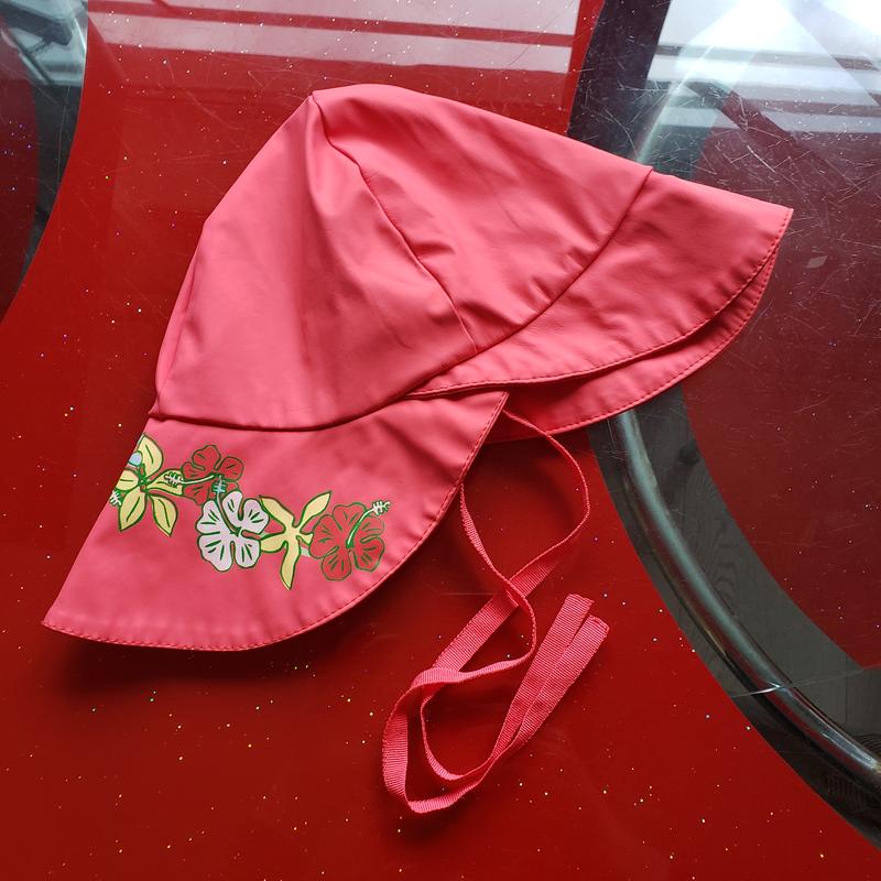Дитяча підліткова жіноча панама від дощу панамка 56 р. вказаний на бирці, підійде також на 55 р. Напис на козирку Aloha Waikiki З принтом гавайські квіти. Колір кораловий Нова, без паперової бирки