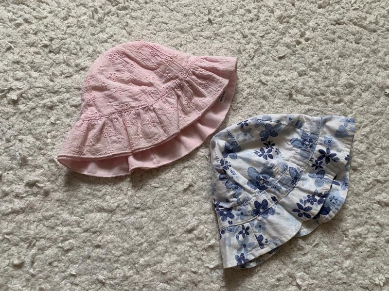 Панама рожева no name б/в розмір 0-3м 56-62см (буде на довше до 6м точно) - 50грн, панама блакитна George б/в розмір 6-12м - 45грн