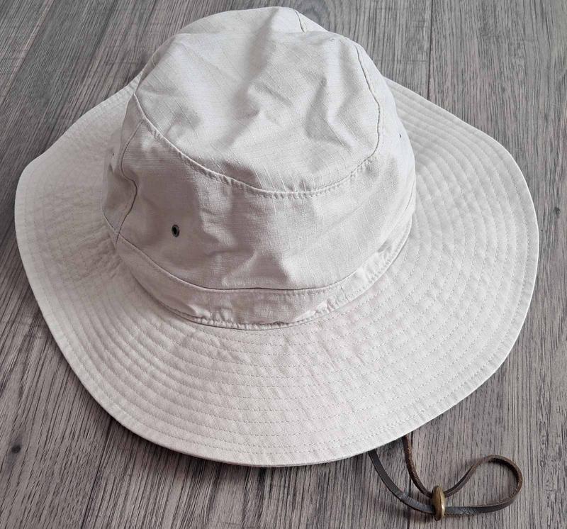 Чудова панама бренду M&S. Стильна, якісна, практична річ. Шкіряний шнурок, який регулюється фіксатором. Матеріал: 100% бавовна. Розмір M Ідеальний стан. Повністю відповідає фото!