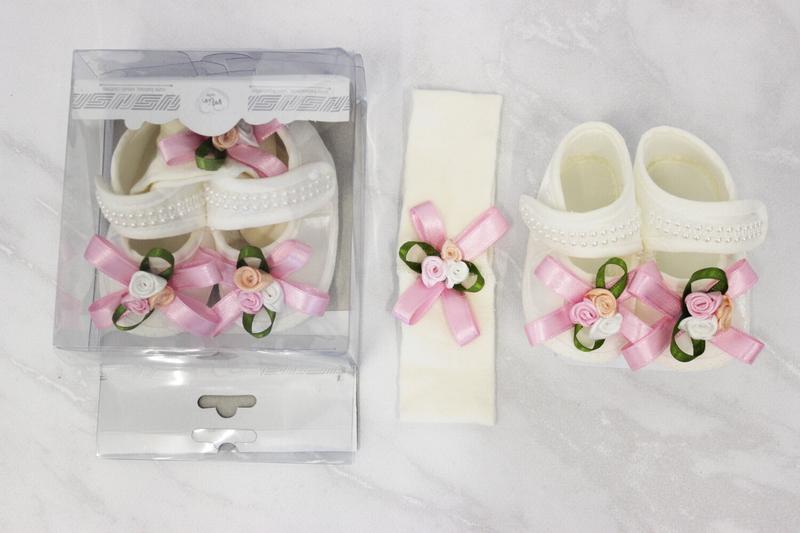 Набір пінетки і пов'язка для дівчинки нарядні молочні з бантиком до 6 міс
