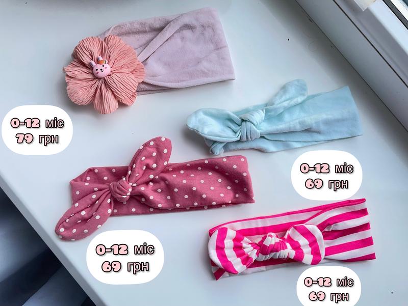 Стильные повязки для вашей красавицы. Возраст будет от рождения до 12+ мес. Состояние все как новые, хорошо тянутся