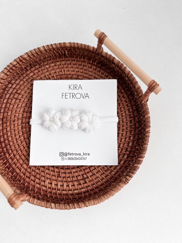 Пов’язка one size - від народження і до 2-3 років буде. Колір - білий. Розмір - 0-3 роки. Матеріал - напівбавовняна нитка, намистини або без них (дивлячись яка партія), нейлонова пов’язка. Варінти кольорів на останньому фото.
