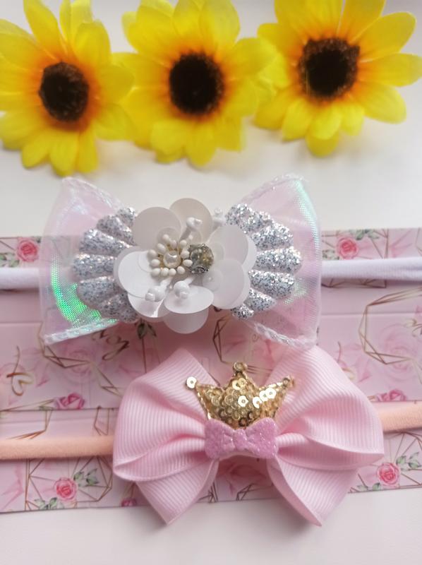 Набір пов'язок для маленьких дівчаток. Від 0-12місчців. Набір -2щт-158 грн