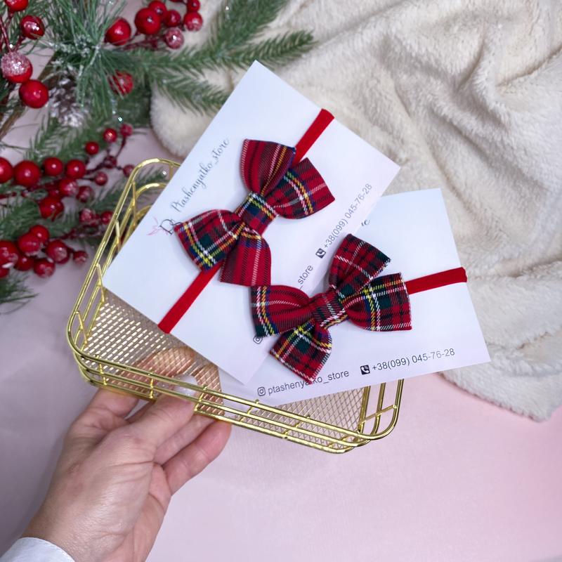 Бантик на повʼязці у клітинку(шотландку), бантик безрозмірний one size