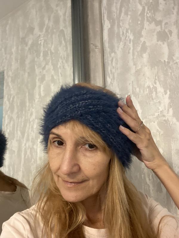 Повʼязка на голову пухнаста. Дуже мʼяка та тепла. Красивий синій колір. На розмір голови 54-56 см. Яскравий аксесуар зими та весни.