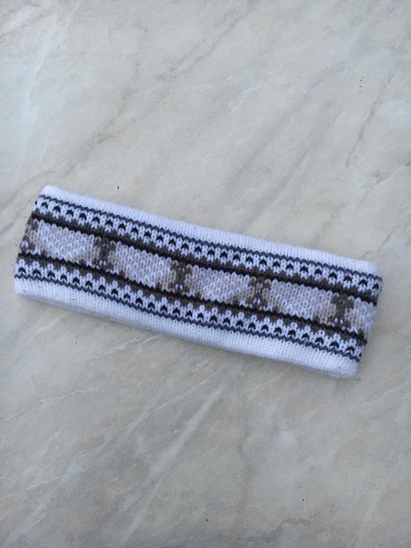 Подвійна вязана пов’язка на голову з орнаментом, підкладка фліс. Зроблена в Канаді, Capello. Стан відмінний Ширина 25 см, висота 8 см