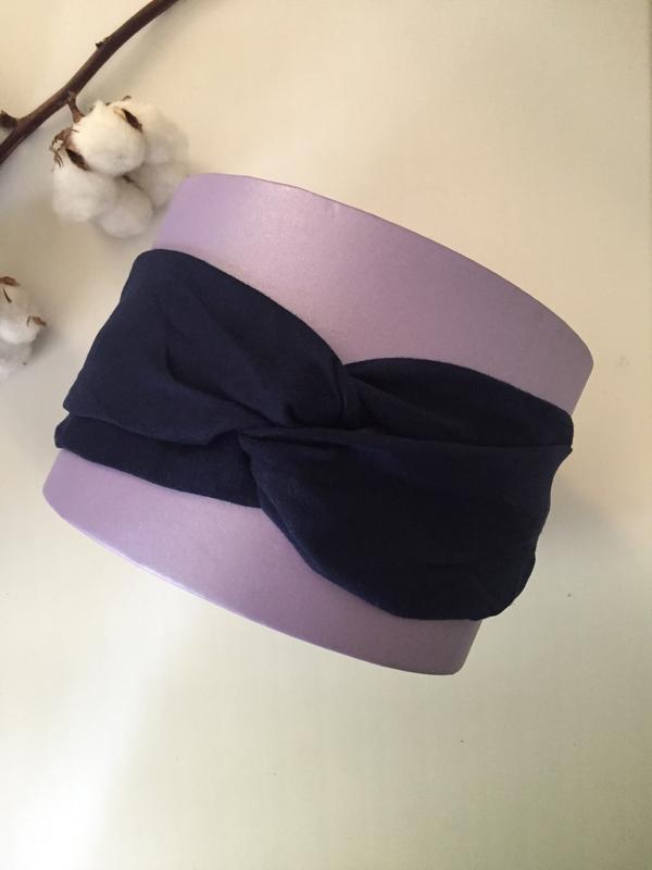 Пов'язка на голову замшева чалма синя синього кольору обруч обідок