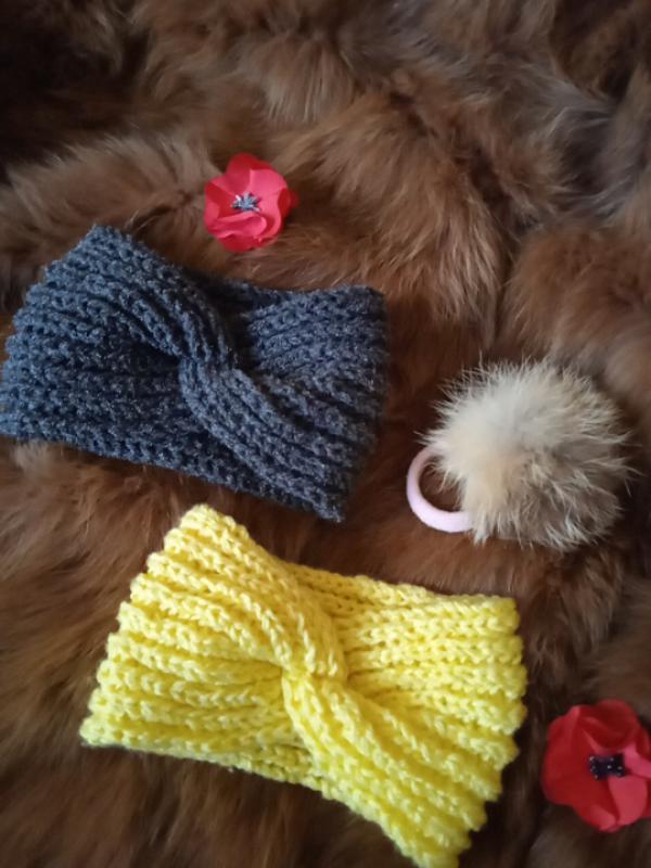 Пропоную повязочки на голову ручної роботи, розмір підходить на всіх,пов'язані м'якою гумкою.При купівлі подарунок резиночка з хутряним балабоном.