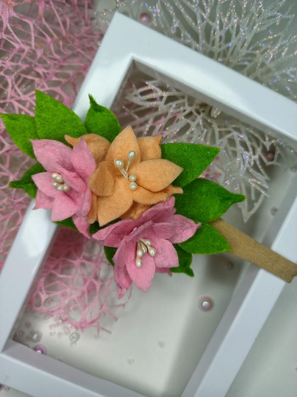 Пов'язка на голову ьнсшовная квіточки з фетру ручна робота