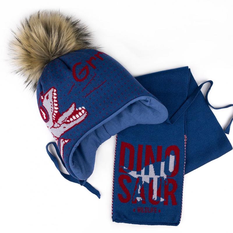 Комплект (шапка, шарф) детский зимний с принтом динозавр 52см