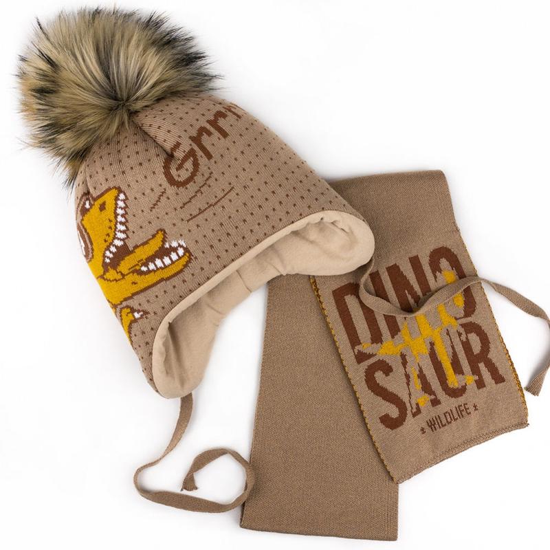 Комплект (шапка, шарф) на зиму хлопчикові з принтом динозавр