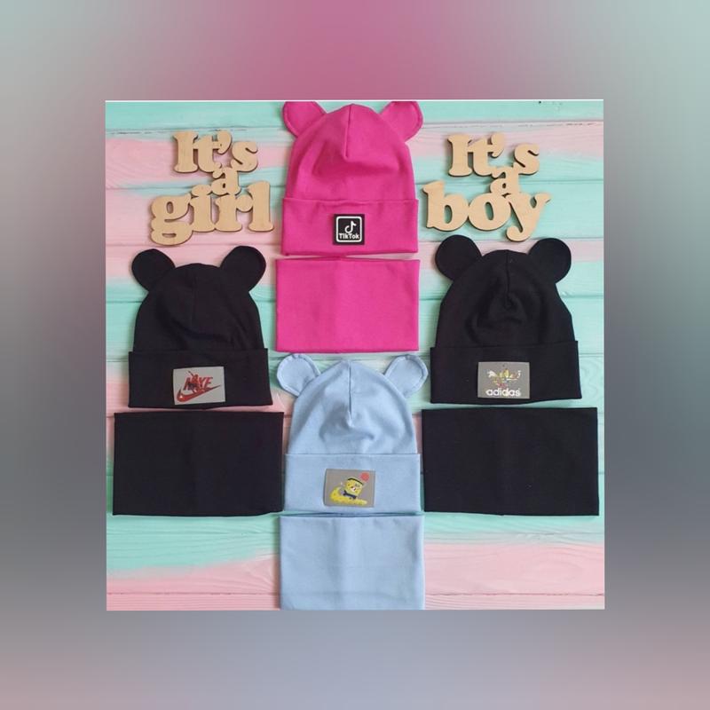 двойна стрейчева шапка + хомут два розміри від 0 до 2 років та від 2 до 6 років
