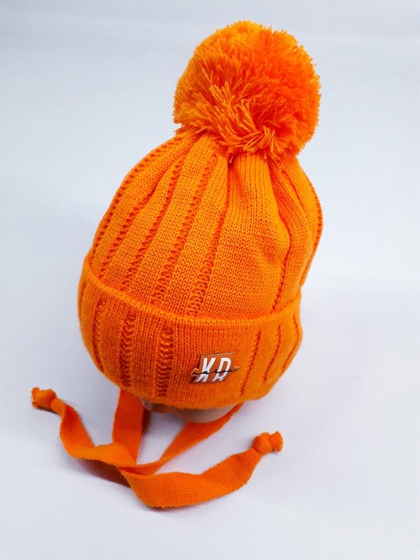 Демісезонна шапка для хлопчика на зав'язках. Одинарна в'язка, декор емблема. Шапки торговой марки Kraft виготовлені з найкращих матеріалів для дітей.