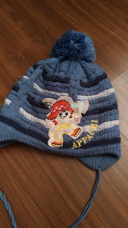 Дитяча зимова шапка на 3 роки. Стан дуже добрий. Висота 18 см. Ширина 21 см. Трішки тягнеться.