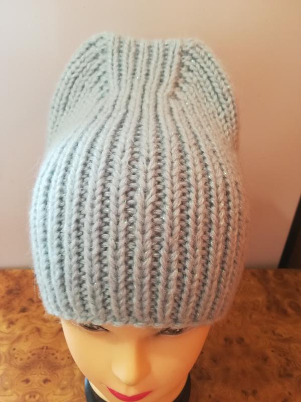Вязана зимова шапка з ангори. Ручна робота. Колір сіро-блакитний. З доданням люриксу. Розмір 56-58. Зимова, тепла, стильная шапуля. Замовляйте не пожалкуєте). Підписуйтесь на мою шафу.