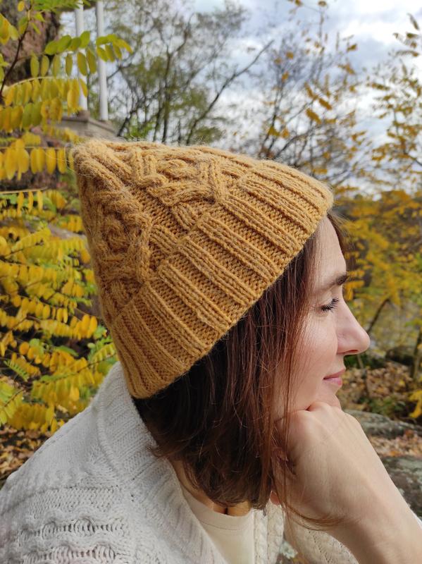 Жіноча шапка, зв'язана вручну шпицями. Виконана із напіввовни (в складі альпака) дуже якісно. Тепла, сучасна, оригінальна. Підійде на розміір 54-56 см.