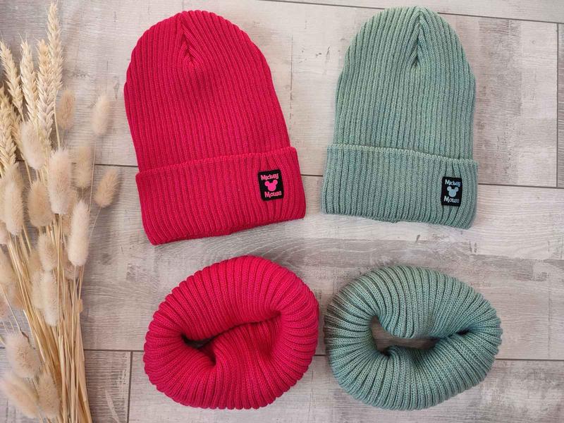 Ціна 450 грн. Набір для дівчинки: шапка та подвійний хомут Сезон холодна осінь-зима. Матеріал в’язка, акріл, утеплення фліс. Якість хороша. 3-15р. Полуобхват шапки 18см, тягнеться до 29см, висота шапки 22,5см, висота хомута 21см.
