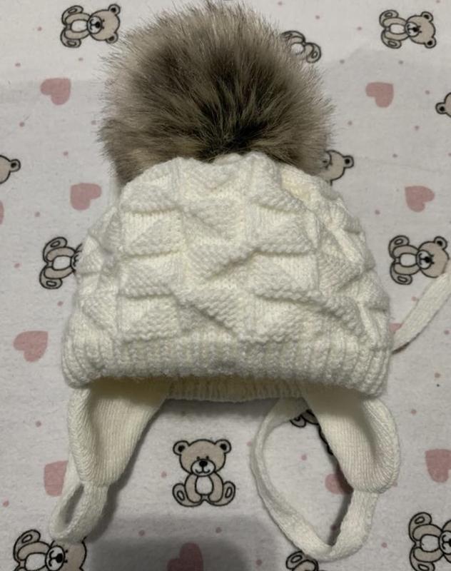 Дуже красива шапка з шарфиком на зав‘язках, 0-3 міс Стан нової