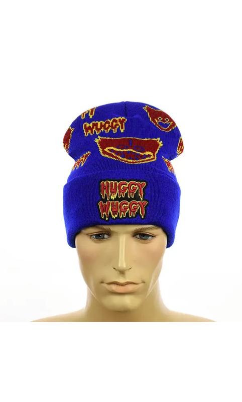 Дитяча шапка-лопата пов'язана жаккардовою в'язкою з напіввовняної пряжі. Зсередини по всьому куполу утеплена флісом. Викрутка шапки прикрашає яскрава вишивка "Huggy Wuggy". Розмір 55-57 акрил - 50%, шерсть - 50%
