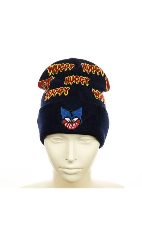 Дитяча шапка-лопата пов'язана жаккардовою в'язкою з напіввовняної пряжі. Зсередини по всьому куполу утеплена флісом. Викрутка шапки прикрашає яскрава вишивка "Huggy Wuggy" Для дітей 3-5 років. Розмір 52-54. акрил - 50%, шерсть - 50%