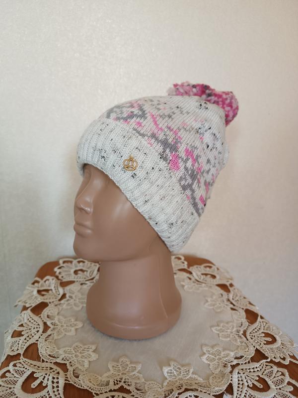 Нова тепла шапочка для дівчинки/ шапка з помпоном та флісовою підкладкою