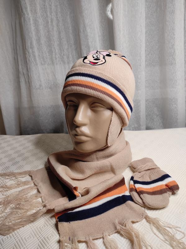 🔻 100 грн, новий набір Набір (подвійна шапка, шарф, рукавички) для дівчинки 1-2 роки. Дуже м'яка і ніжна в'язка.