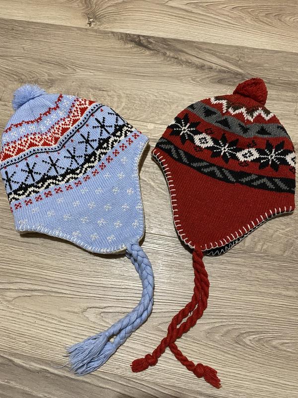 Зимові шапочки Голубенька на трохи більший об’єм голови, червона-менша, обидві підійдуть на дорослого Стан ідеальний