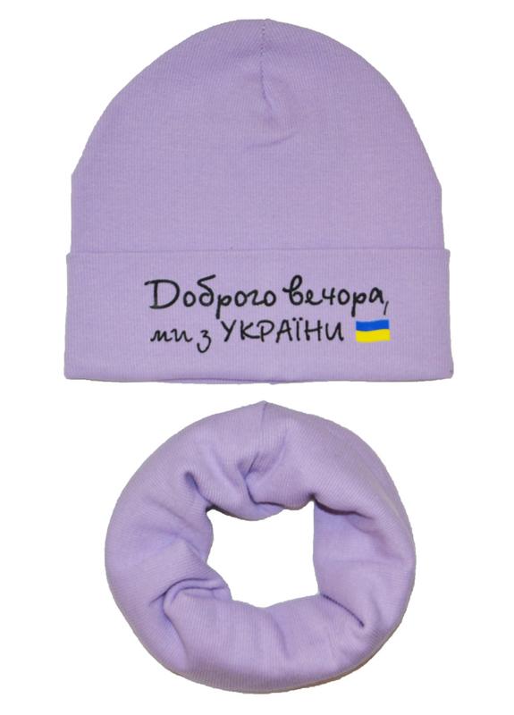 Шапка и шарф-снуд на зиму "доброго вечора" 50/56см сиреневый
