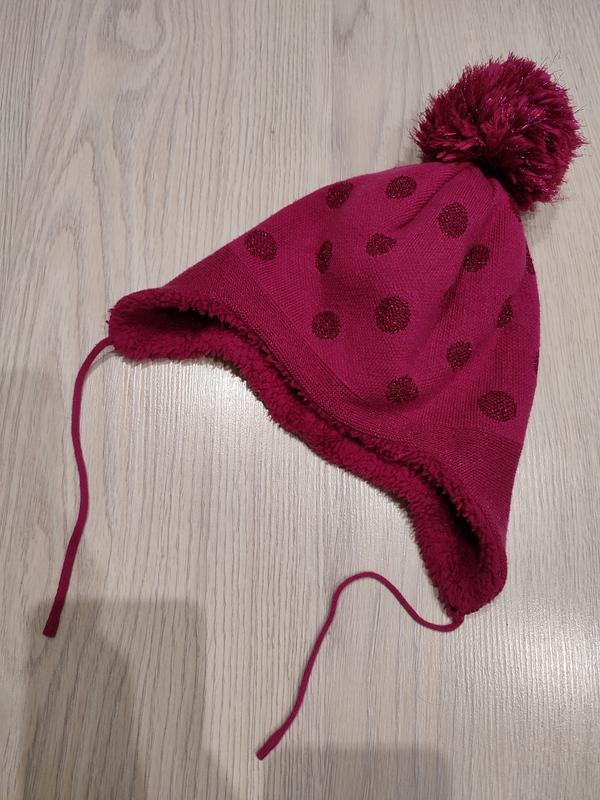 Тепленька шапочка для дівчинки в гарному стані. Розмір 92/104, на вік 2-4 роки. Така шапочка є у світло-рожевому кольорі.