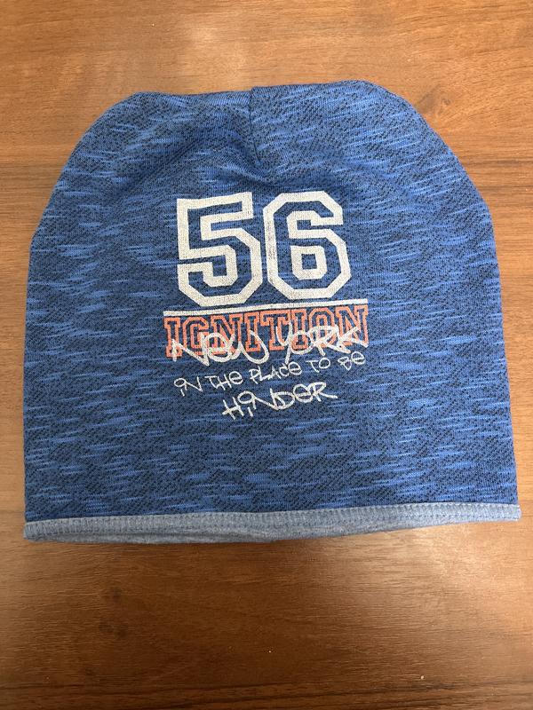 Шапка синя голуба в полоску тоненька дитяча хлопчакова