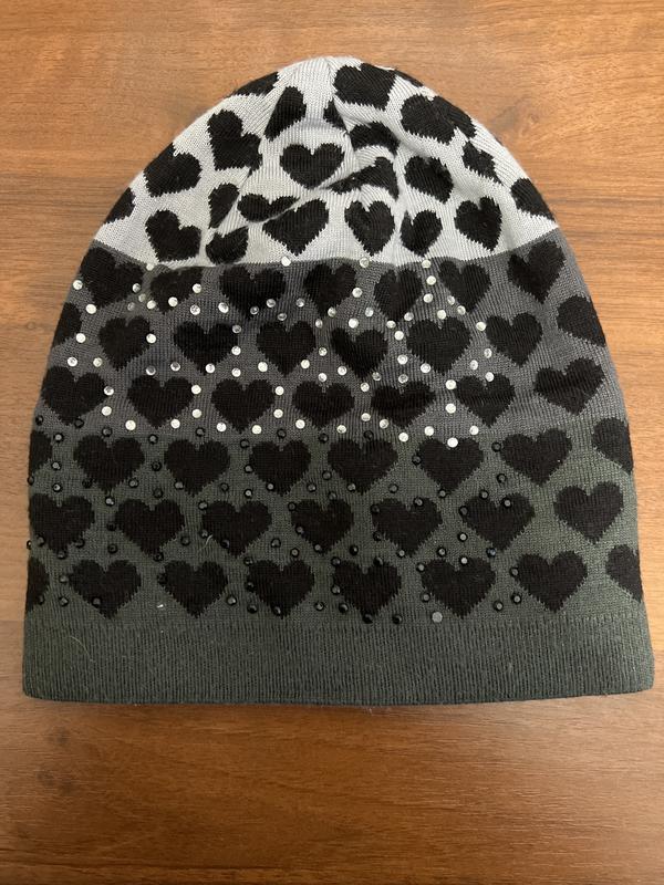 Чорна з сірим шапка з сердечками тепла