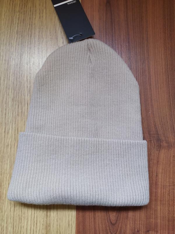 жіноча шапка з підворотом, тепла, гарної якості, машинна в'язка бежевого кольору