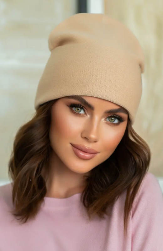 Шапка. В`язана шапка Моніка Вязана шапка з відворотом, виготовлена з мякої, еластичної пряжі. Оригінальний дизайн цього аксесуару підійде як до спортивної куртки, так і до модного пальта. Декорована фірмовим прикрасою. Склад: 12% кашемір, 35% шерсть, 50% бавовна, 3% еластан лаві 387