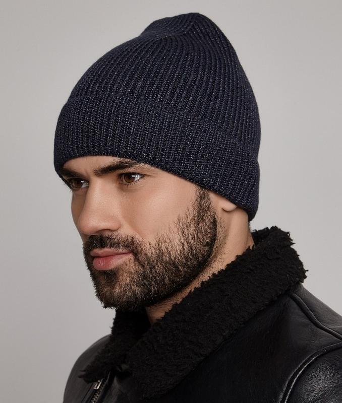 Осіння чоловіча в'язана шапка лопата з відворотом