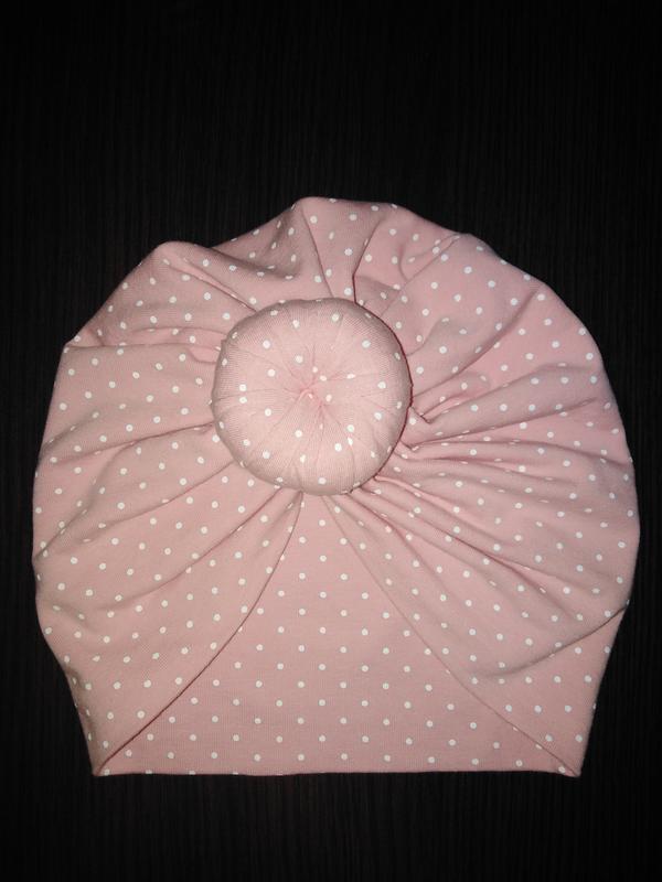 Шапочка-тюрбан двухслойный для маленькой модницы на объем головки 45-47см нежно-розового цвета, примерно на 1,5-3 года, на теплую весну-осень или прохладное лето. Состояние новой