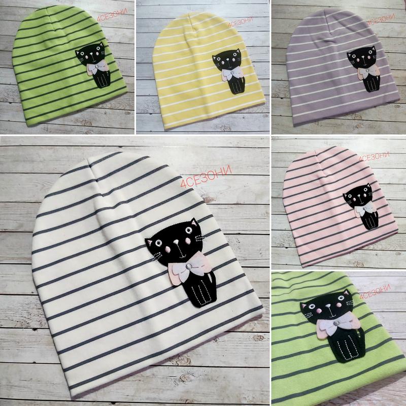 🌷ШАПКА ДЛЯ ДІВЧИНКИ КОТИК ПОЛОСКА 🌷 Шапка весняна подвійна з нашивкою котик з бантиком. Виробництво Україна. Тканина: трикотаж. Розміри : 50-54 . Ціна 185 грн.