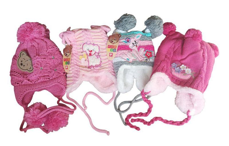 Шапка дитяча зима.Перша з подвійною в'язкою,друга,третя,четверта з хутром у середині.Вироблено в Польщі.