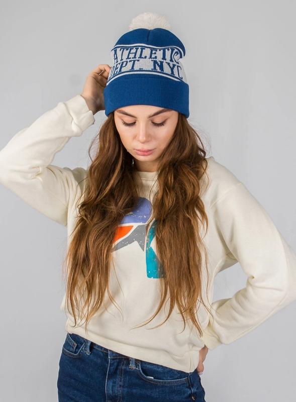 Блакитна шапка🩵 з бумбоном в спортивному стилі Alcott. Склад: 100% акрил Розмір: one size (54-58см) Подвійна.