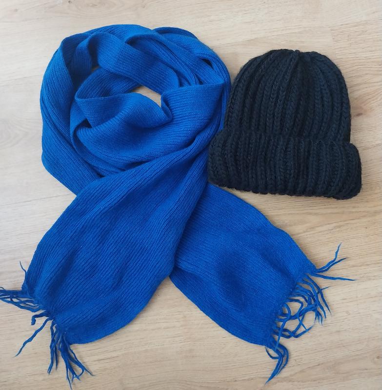 Зимова шапка на флісі в'язана шарф в подарунок синій
