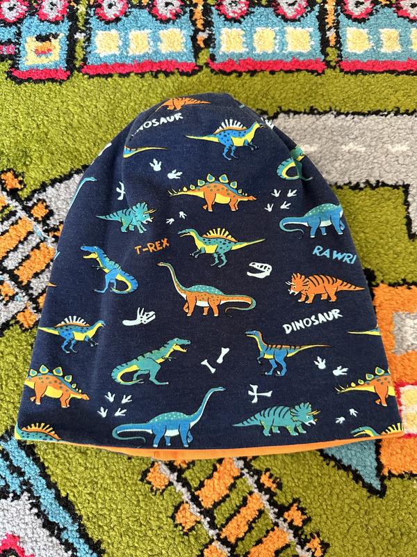 Двошарова трикотажна шапочка з динозаврами на 3-5 років