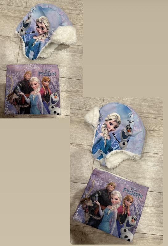 Присборенный набор для девочки у прин мультика « холодное сердце» Подойдет на 4-8 лет ориентуйтесь по замерам/ Высота шапки 15-24 см/ Полуобхват головы 19-24 см/ Высота хамута 20 см/ Полуобхват хамута 24,5 см/ Местами являются пятна на фото видно, в цене учтены, продается как есть без возврата/